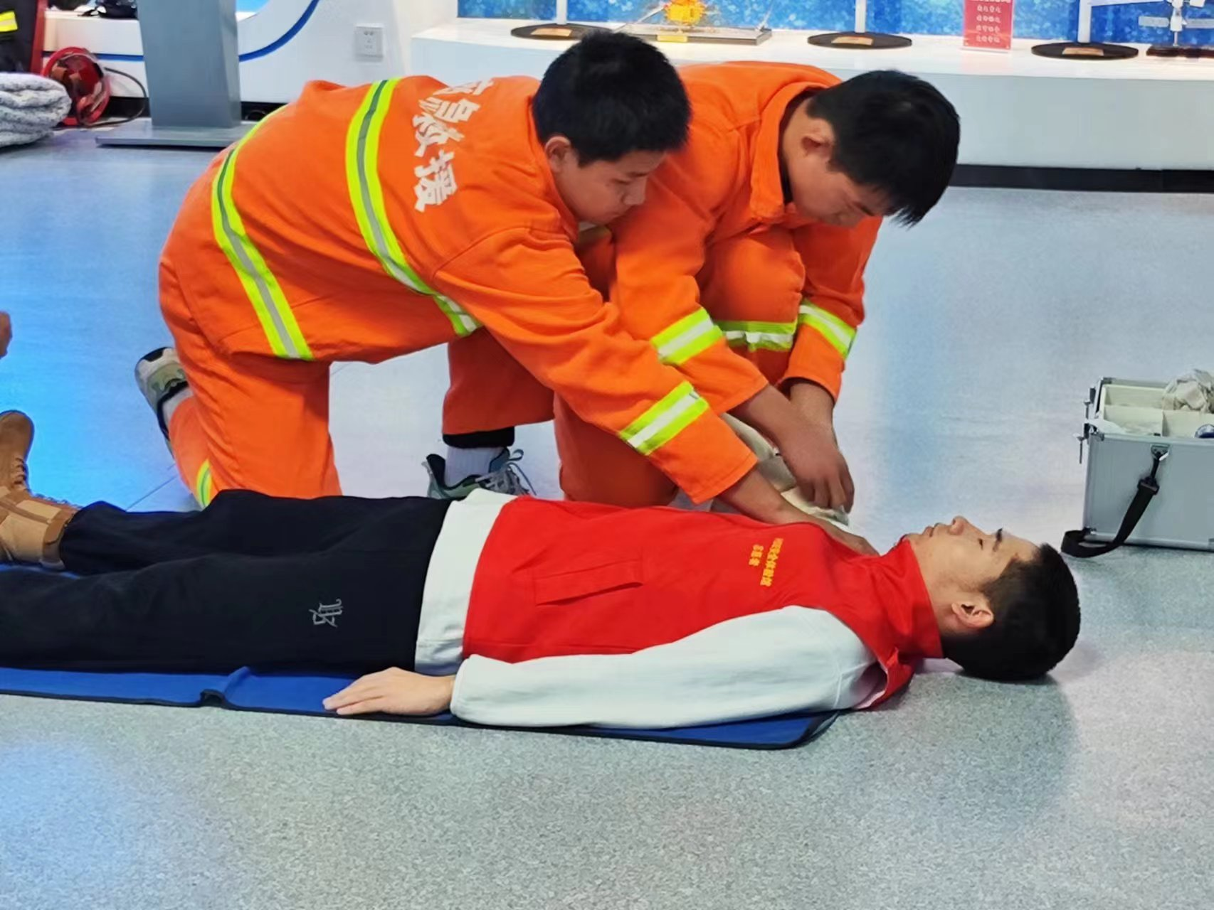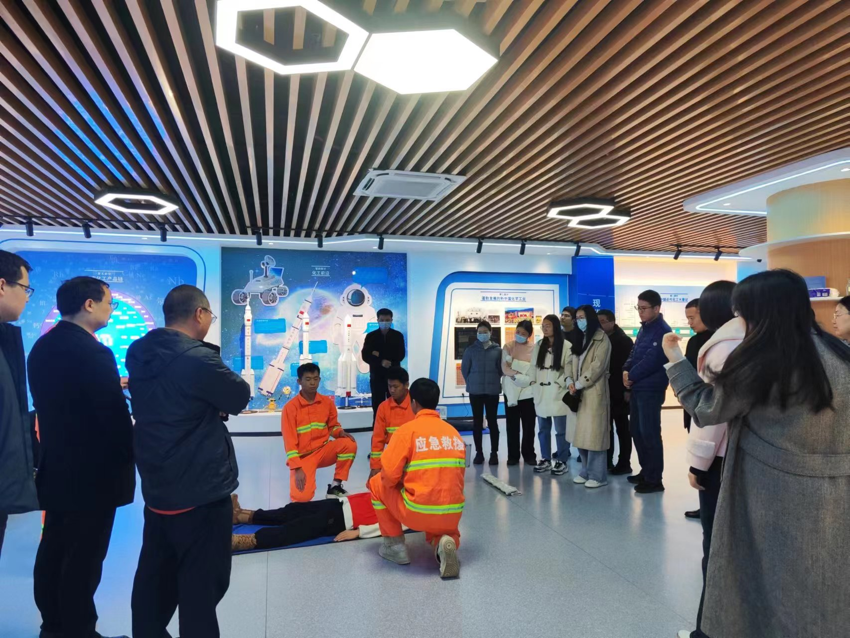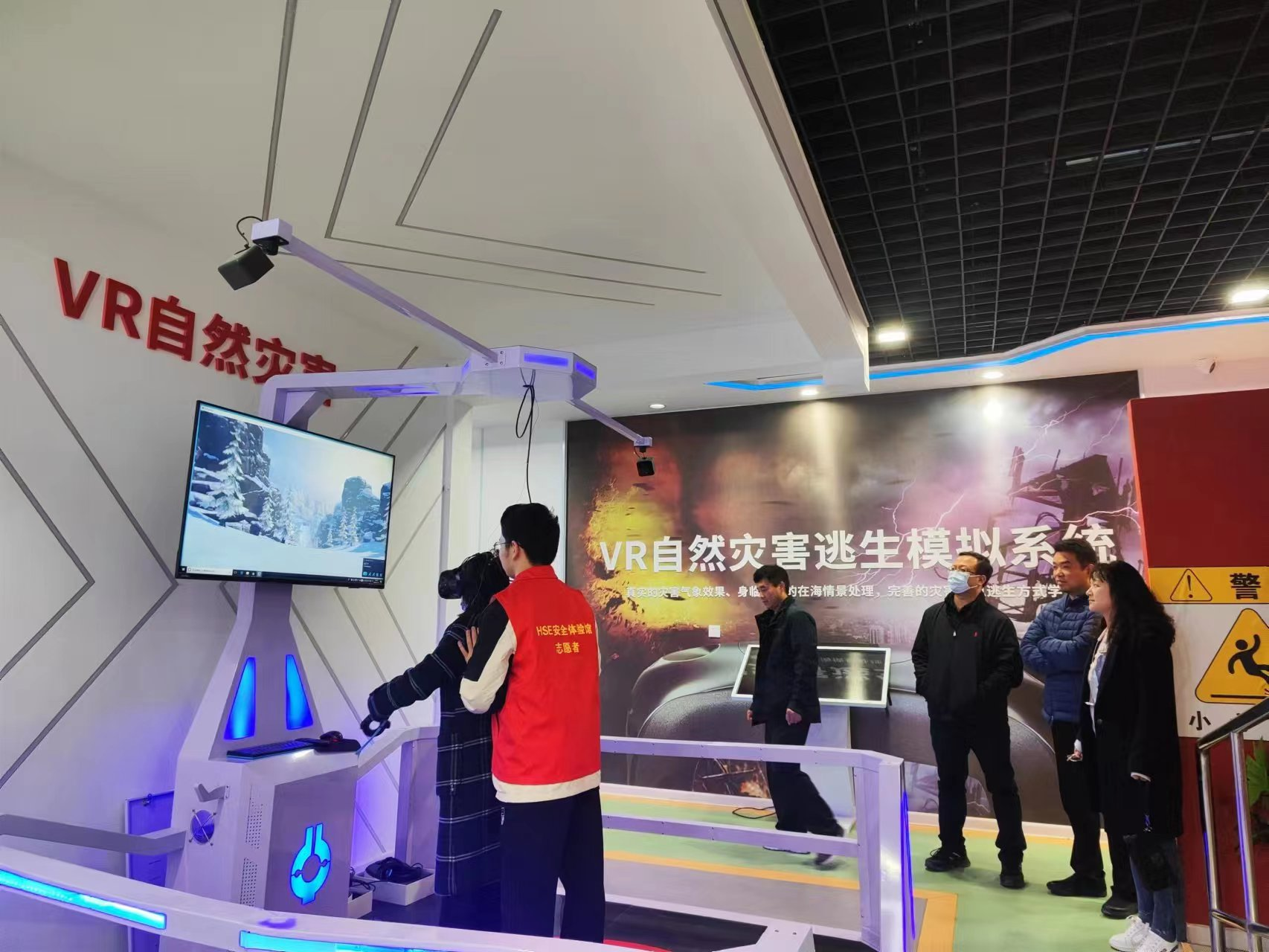 在消防安全、公共安全、家居安全等设施互动体验区,参观人员利用VR模拟器和消防逃生装置,感受真实的火灾现场;利用倾斜小屋,感受地震时的房屋倾斜;利用模型人,学习心肺复苏技能。经过一系列“零距离“互动体验,参观人员更加直观更加深刻的了解了安全知识和应急处置方法。