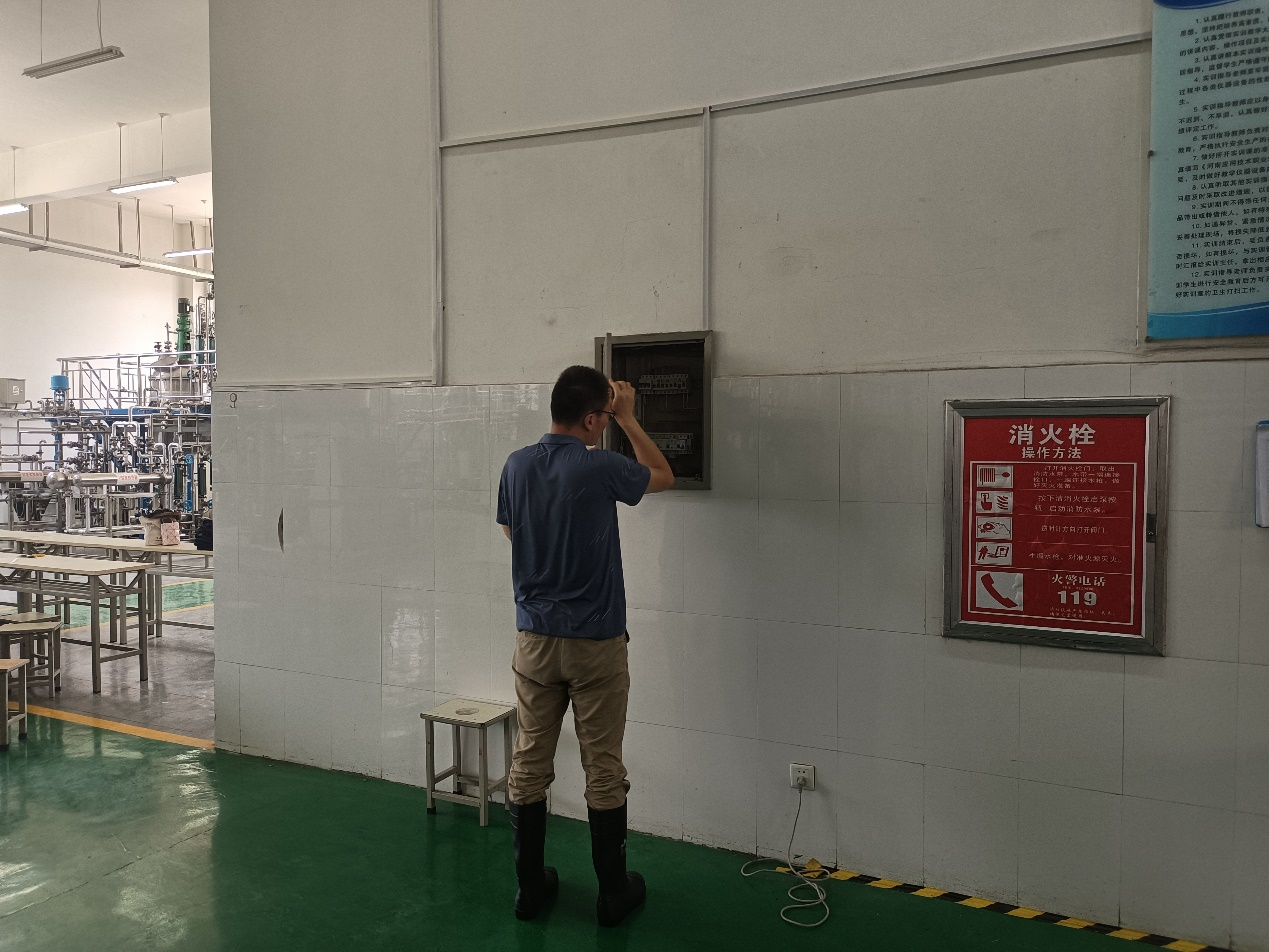 因beat365官网化工综合实训中心位于2号实训类负一层,比校园的水平面低,且实训室内实训设备都是380V的动力电。演练模拟情景是:雨水顺着卷闸门和实训室墙体伸缩缝处流入室内,人员盲目进入实训室工作(如排涝),容易造成触电事故。