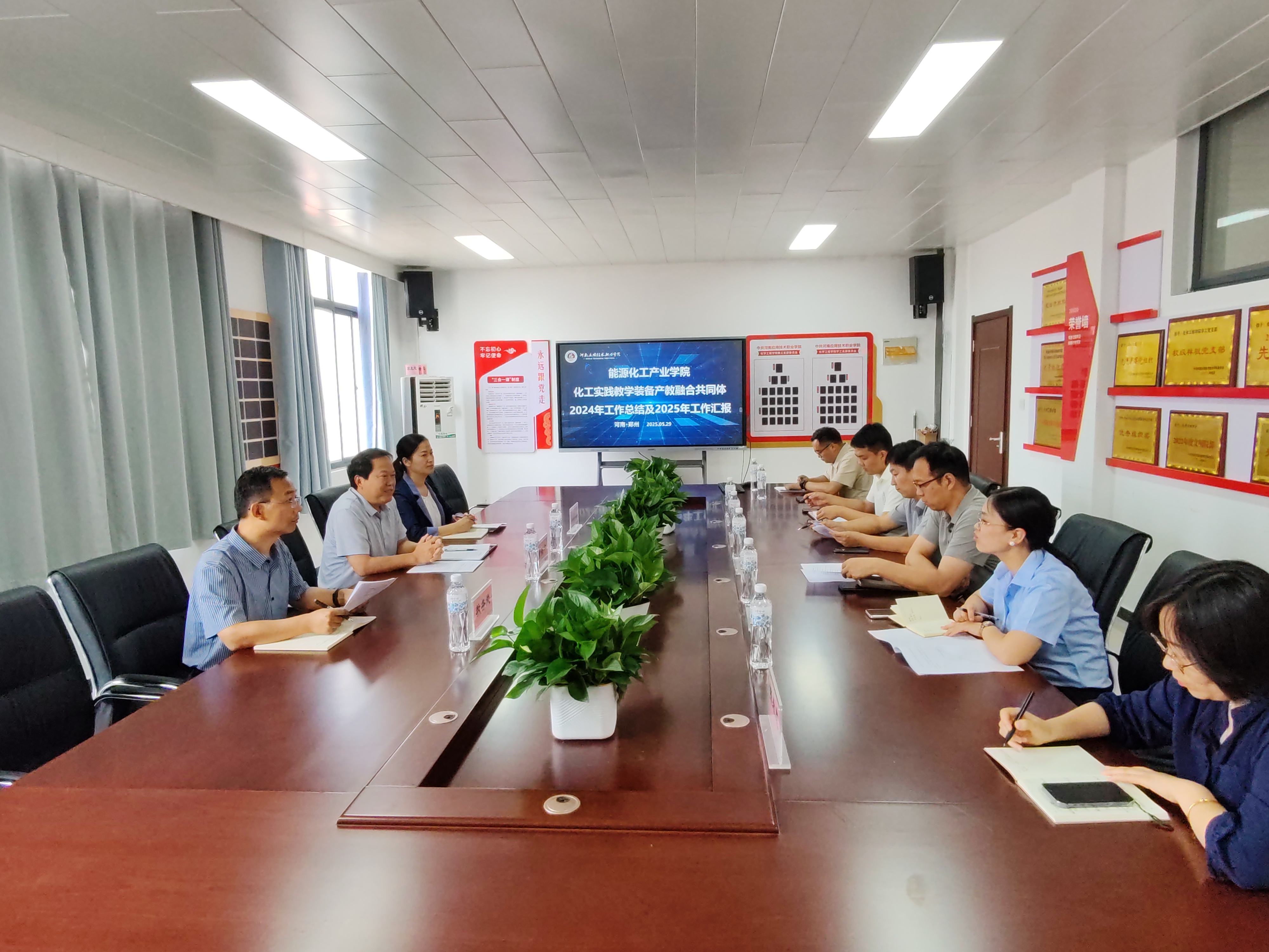 2025年5月29日下午,beat365中文版官网入口组织召开能源化工产业学院、化工实践教学装备产教融合共同体工作会议。学校副校长常新中、教务处副处长付永、校企合作处副处长梁艳、河南省能源集团经理邵孝辉、共同体牵头单位河南莱帕克化工设备制造有限公司经理刘静阳及学院领导班子参会,会议由学院院长朱冰主持。