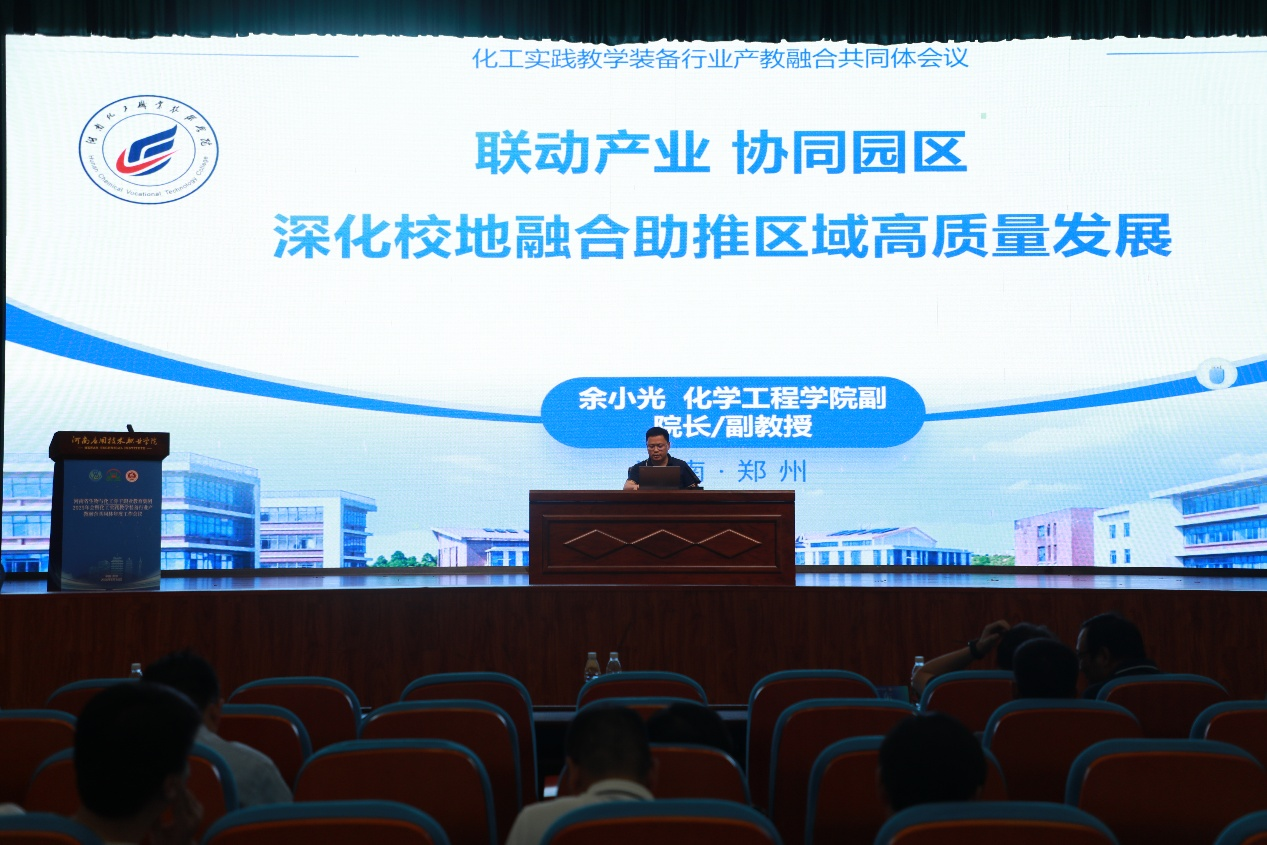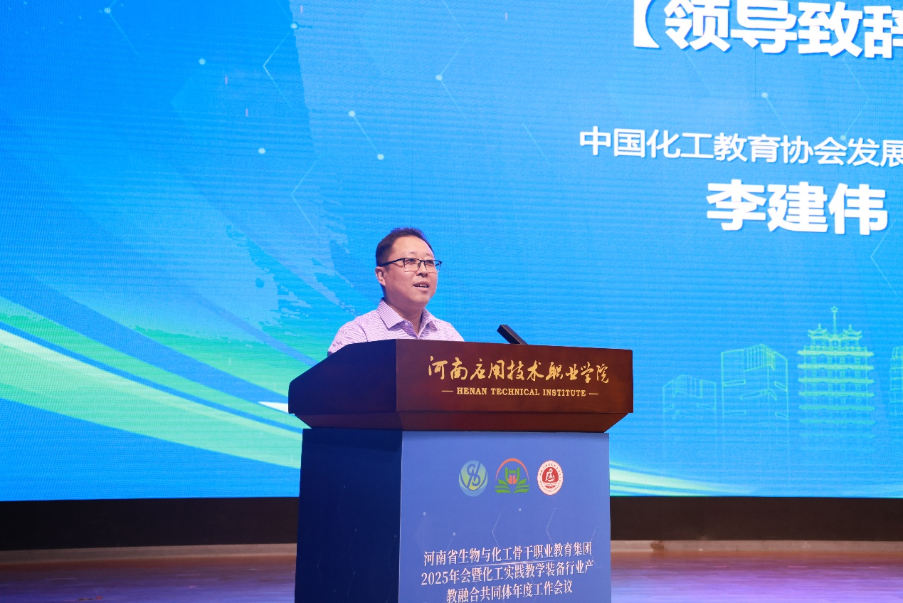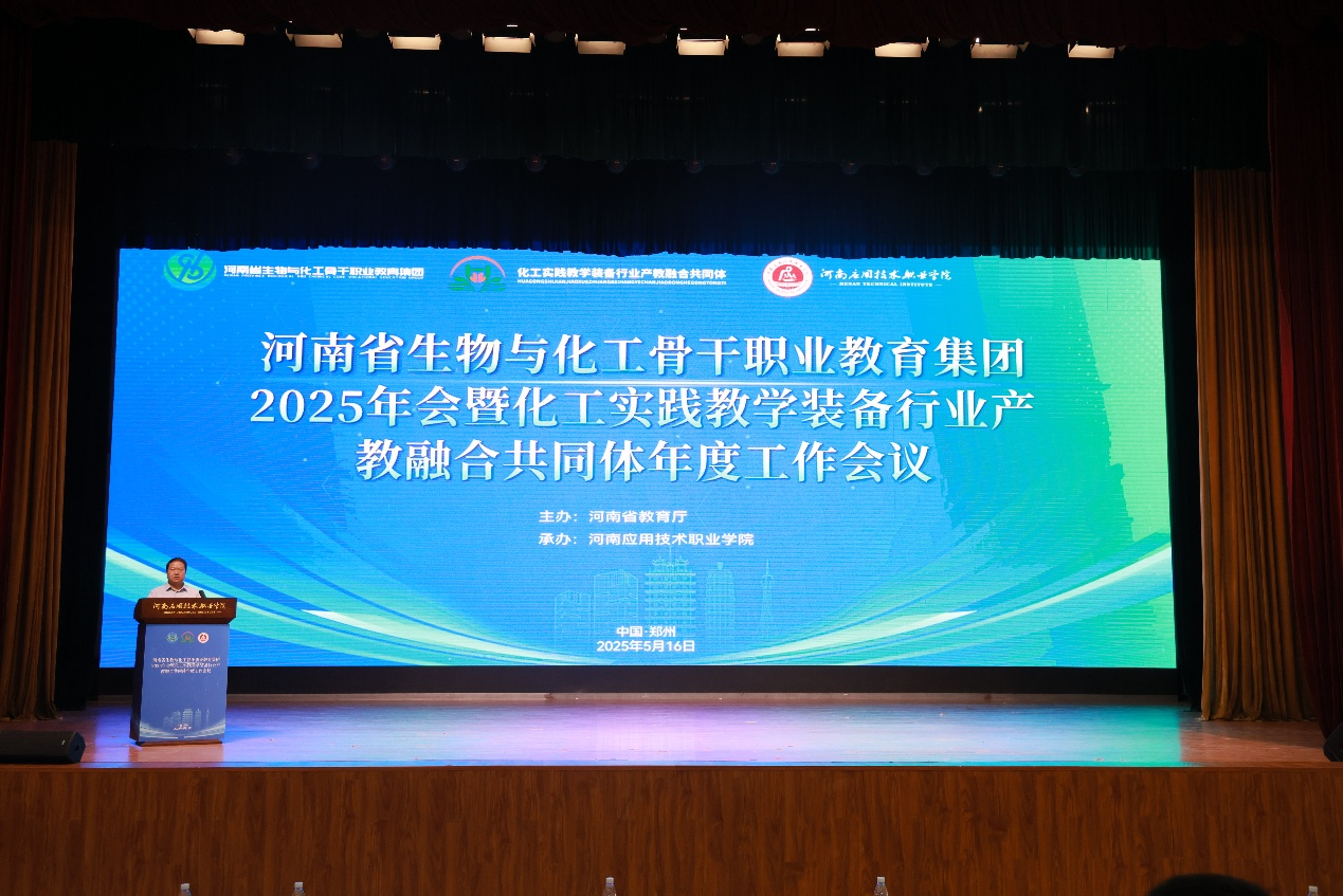 本周是beat365官网职业教育活动周,5月16日上午,河南省生物与化工骨干职业教育集团2025年会暨化工实践教学装备行业产教融合共同体工作会议在beat365官网郑州校区学生活动中心隆重召开。中国高等教育学会地方高校分会理事长屈凌波、河南省石油和化学工业协会会长苏东等领导及省内外院校、行业企业代表近120人参会。会议由副校长常新中主持。