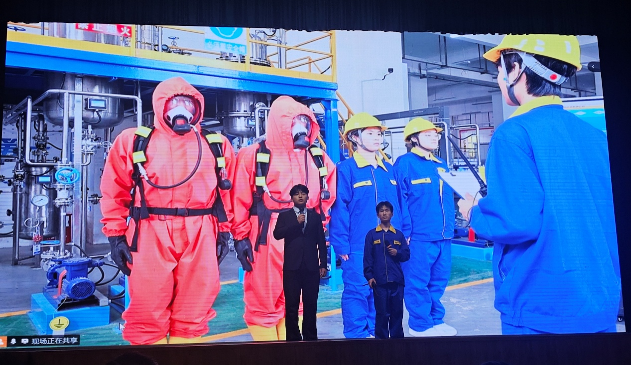 在精彩的现场展示环节中,beat365中文版官网入口以“煤制甲醇工艺分离器法兰泄漏应急处置”为主题,呈现了一场高水平的技能演练。演练模拟了法兰腐蚀引发泄漏的紧急场景,学生团队严格按照现代化工HSE应急处置法则,通过“侦检、隔离、堵漏”标准化流程,迅速控制险情。旁白解说结合LED大屏工艺流程演示,生动展现了化工安全操作的重要性。学生们的精湛技艺和沉着冷静的表现赢得了现场阵阵掌声。