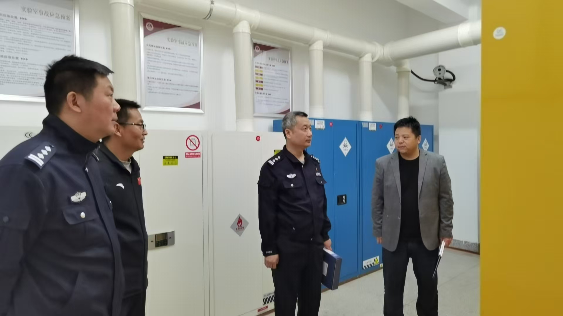 检查过程中,禁毒大队对学校在易制毒化学试剂管理方面所做的工作给予了高度评价;对化学试剂流转中心的视频监控系统,自动灭火装置,环境监测系统的规范使用给予赞同,认为学校安全管理制度非常完善,责任落实到位。