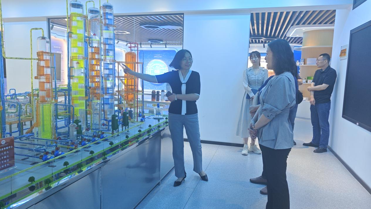座谈会后,范张姣一行参观了beat365官网HSE安全体验馆、化妆品专业实训室等。