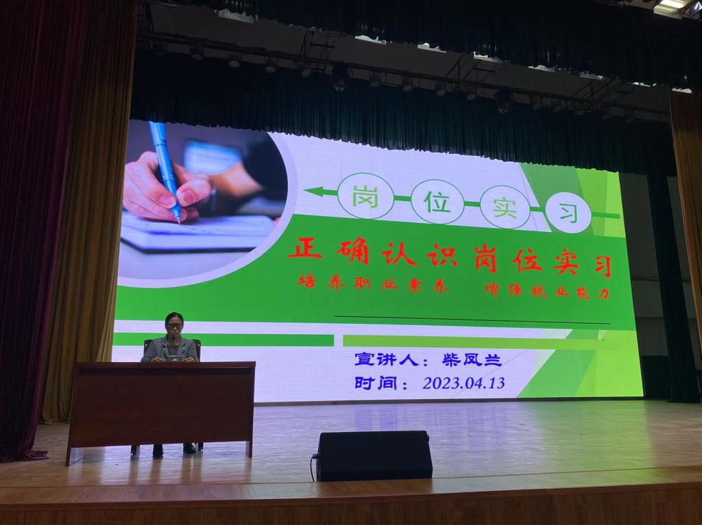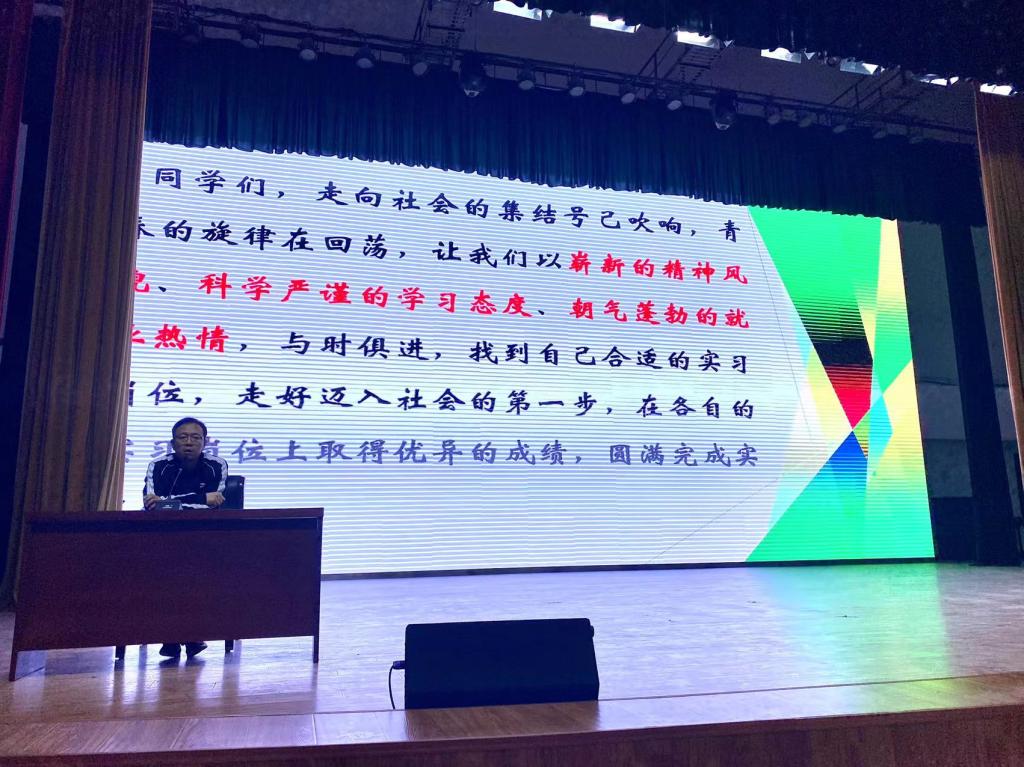 朱冰就岗位实习做了全方位动员。对学生实习工作进行经验分享,鼓励同学们树立正确的择业观,先就业后择业,提高社会心理承受力,积极进取,同时也让同学们认识到职业教育前途广阔,大有可为。