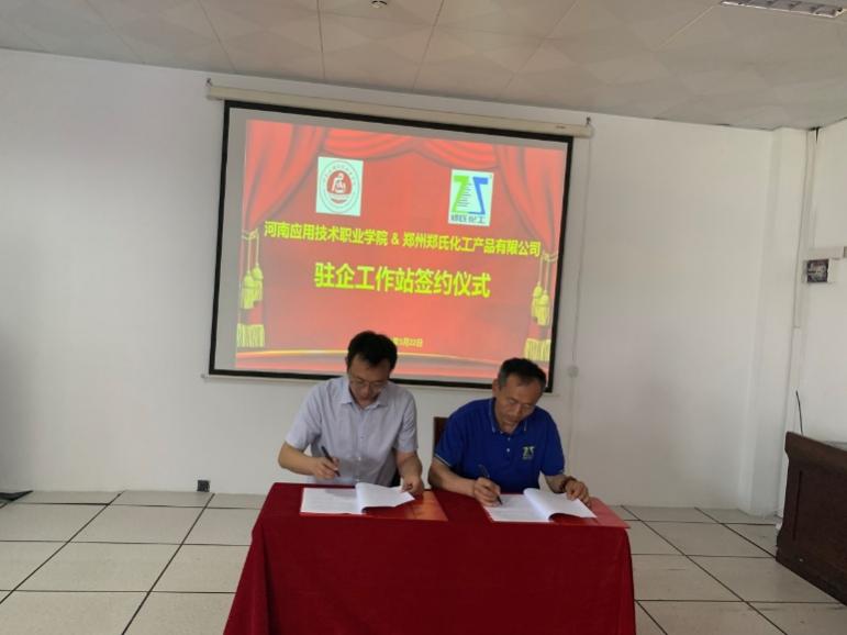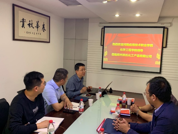 5月22日,beat365官网beat365中文版官网入口朱冰院长、蔡庄红书记等一行四人赶赴郑州郑氏化工产品有限公司举行校企合作签约暨“驻企工作站”揭牌仪式。