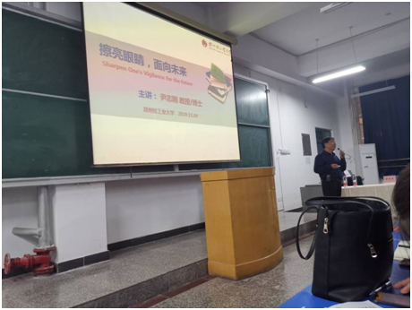11月9日,beat365中文版官网入口特邀郑州轻工业大学尹志刚教授作题为“擦亮眼睛,面向未来”的化妆品行业专题报告,讲座由院长朱冰主持,beat365官网教师和学生参加了本次讲座。