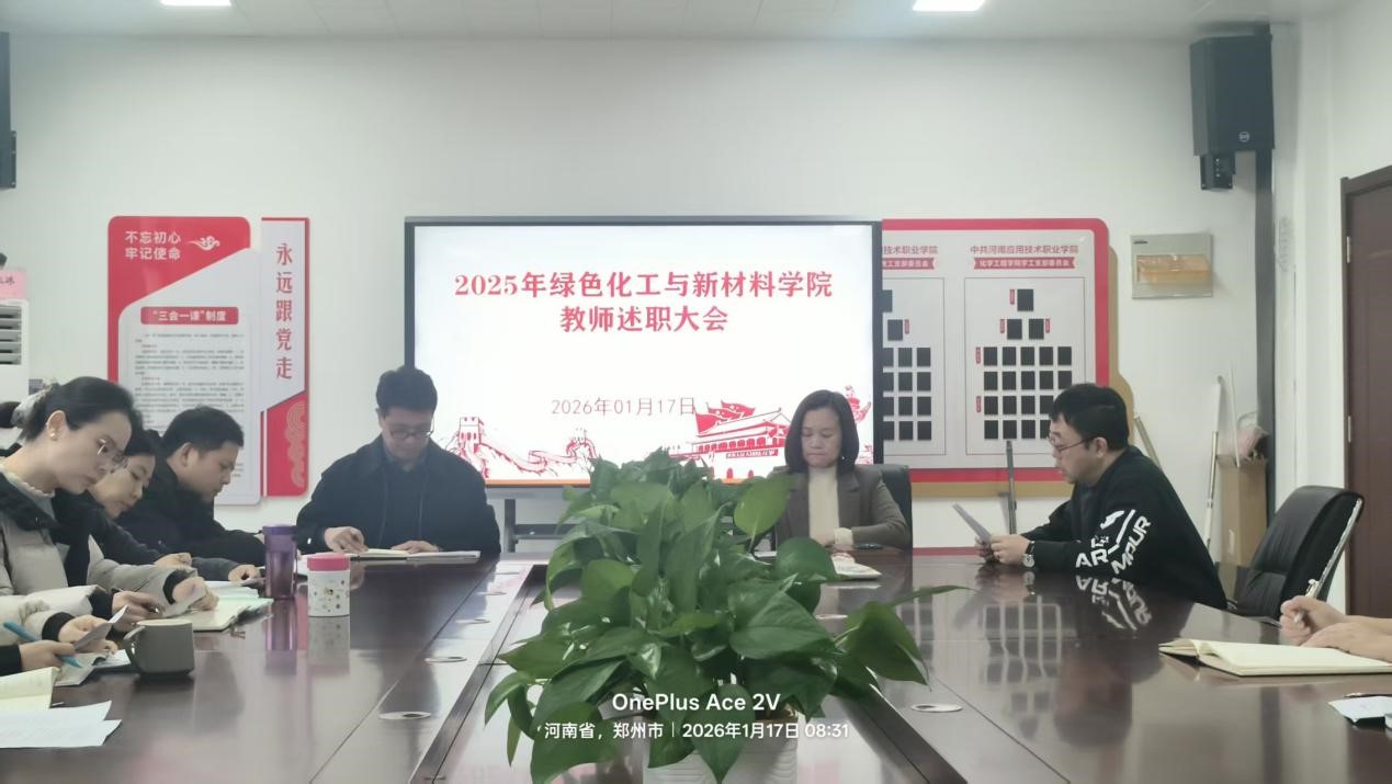为全面总结2025年度教育教学、科研教研与师德师风建设成效,客观评价教师履职表现,锚定“双高建设”核心任务与学院五年发展规划攻坚目标,进一步激励教师队伍潜心育人、锐意进取,根据学校年度考核统一部署,beat365中文版官网入口于2026年1月17日开展2025年度教师述职评议会议。评议工作在512党建活动室进行,学院班子成员及全体专职教师参加,院长周燕主持述职评议会。