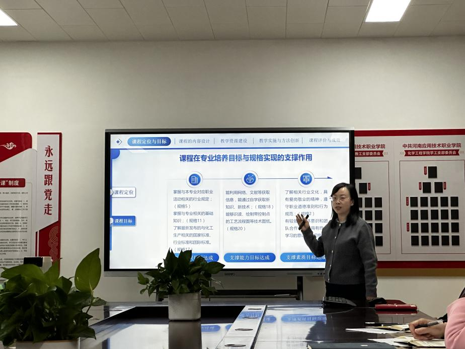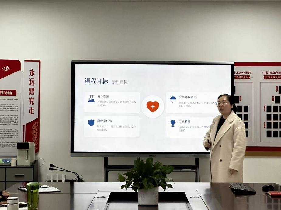 在第一期的“说课程”展示环节,课程负责人何璐红、茹巧荣、李丹娜、白静等教师分别围绕《化学反应过程及设备》、《化工制图》、《精细化工工艺》、《食品仪器分析》等课程,从宏观视角,系统梳理了所负责课程在专业人才培养体系中的定位、目标与支撑作用,详细汇报了课程建设的整体思路、内容体系的优化整合、教学资源的持续建设、教学方法的系统改革以及课程评价机制的创新实践。展示的课程不同程度将工匠精神、职业道德、劳动精神等思政元素有机融入教学全过程,通过创新教学方法与手段,有效破解了教学过程中的重点与难点问题,实现了知识传授、能力培养与价值引领的有机统一,为学院课程建设提供了高质量范例。