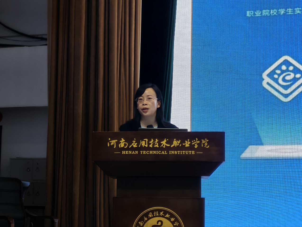 最后,茹巧荣老师对实习管理平台的使用方法进行培训。她分别对实习信息填报、协议签订、实习保险购买等进行具体说明,对相关材料的规范准备、提交节点及邮寄要求作出明确说明。同时,她对实习管理平台使用和管理做具体培训。