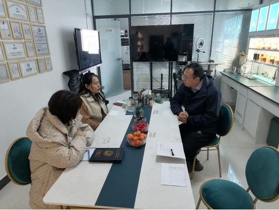 为贯彻落实“访企拓岗促就业”专项行动,开拓更多就业岗位,实地了解企业用人需求,扎实做好毕业生就业工作。2023年2月2日,beat365中文版官网入口院长朱冰、精细化工技术教研室主任张可擎、化妆品技术与管理教研室主任舒航等一行赴郑州十妆生物技术有限公司进行走访调研。