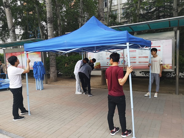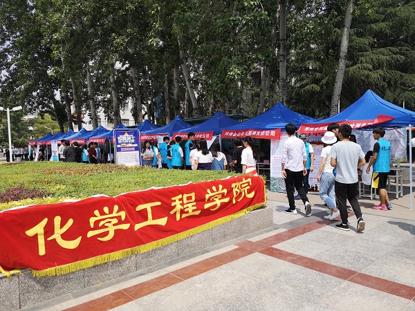 此次招聘会的准备工作由化工学院团总支学生会提前完成,5月11日傍晚将帐篷搭建到位,12日早8点已将桌椅、企业条幅、台签准备就绪,并引导企业签到及布置展位,为此次双选会的顺利开展提供了良好、舒适的环境。