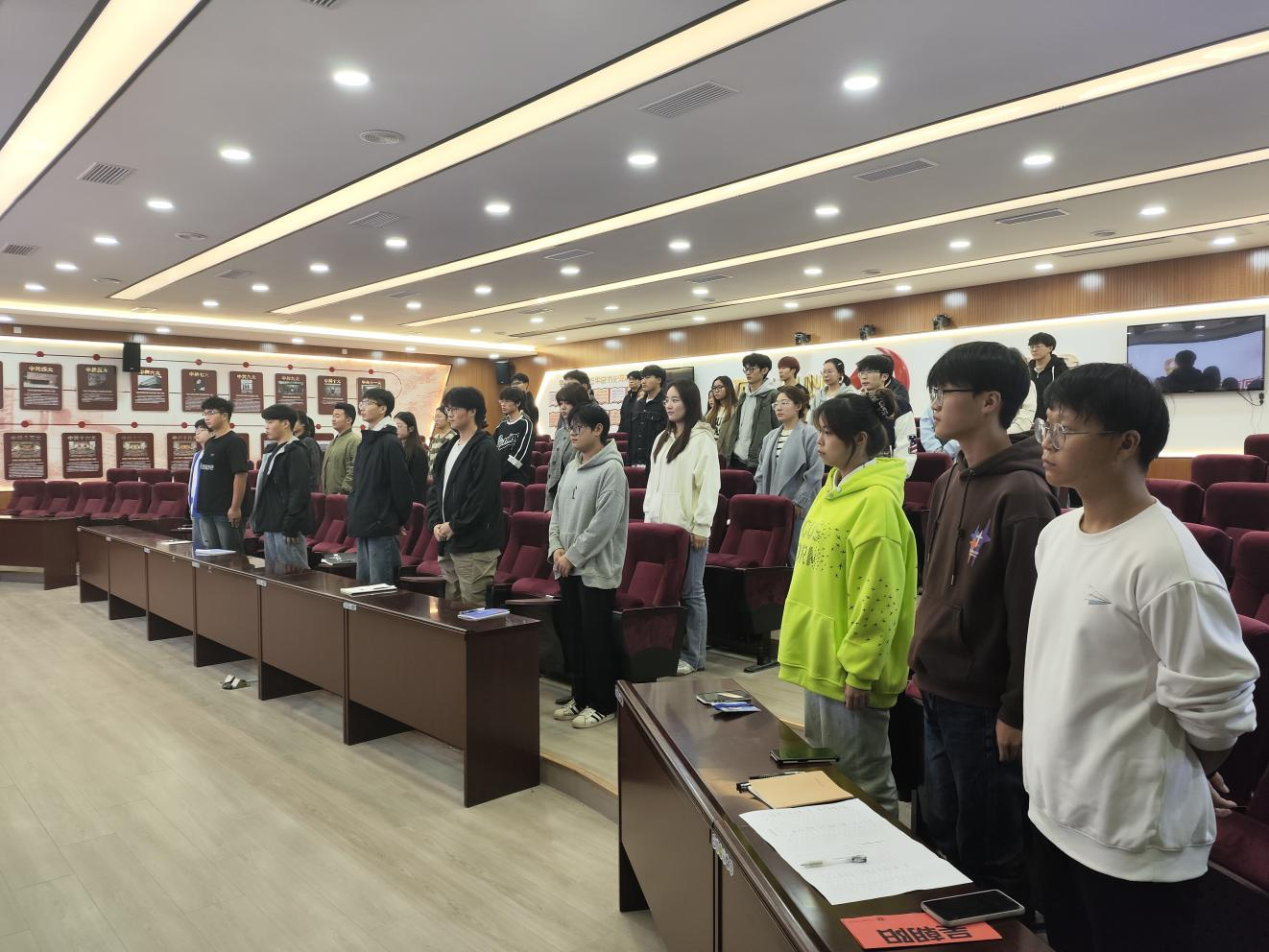 在庄严的国歌声中,开班仪式正式开始。