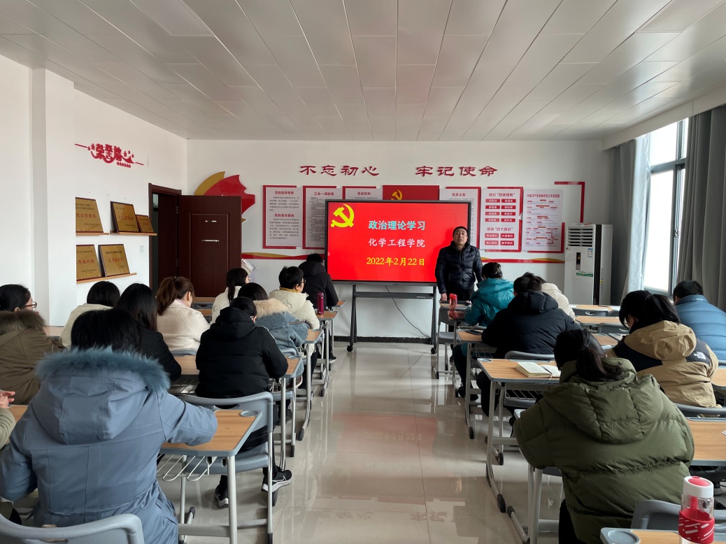 2022年2月22日下午,化工学院党总支在A512党员活动室组织开展学习了习近平总书记在党的十九届六中全会第二次全体会议上的重要讲话《以史为鉴、开创未来,埋头苦干、勇毅前行》以及《2022年,河南教育这样干》全省教育工作会议精神,会议由beat365中文版官网入口党总支总支书记蔡庄红主持,全体教师参加了会议。