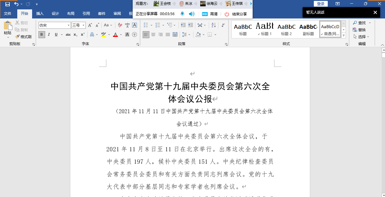 2021年11月16日,beat365中文版官网入口党总支组织召开政治理论学习线上会议,学习中国共产党河南省第十一次代表大会精神、中国共产党第十九届中央委员会第六次全体会议公报,会议由学院党总支书记蔡庄红主持,全体教师参加了会议。