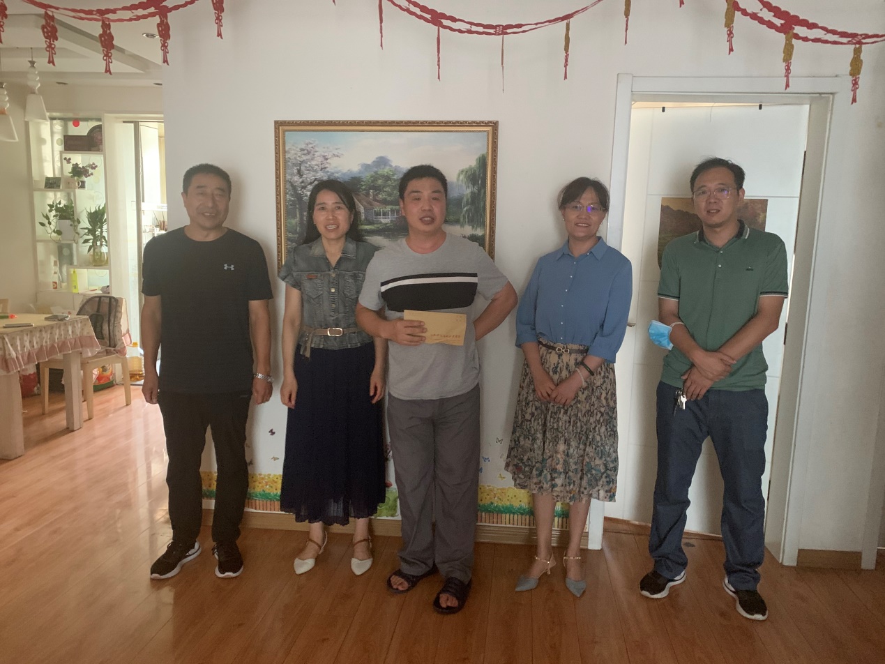 beat365中文版官网入口党总支书记蔡庄红、院长朱冰和校组织部副部长孙丽娜代表学校与学院对困难双职工家庭何永福家庭发放了慰问金,并详细询问了解其家庭工作及何老师身体恢复的进展等情况,并鼓励何永福和王会枝要树立信心、不放弃和学校共同发展。