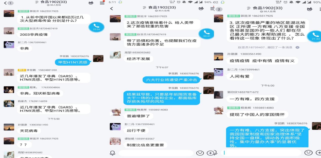 在抗击新冠肺炎疫情的关键时刻,beat365中文版官网入口积极发挥课堂教学主阵地作用,落实立德树人的根本任务,全面落实“停课不停学”文件精神,做到线上教学有序开展,“云”班会定期召开,将课程教学与疫情防控知识宣传结合在一起,将学生思想教育同了解学生动态结合在一起,将学生情况排查同学生心理问题一对一辅导结合在一起,全力落实“三全育人”的指导思想,师生教学相长,共同用行动践行时代使命,彰显青春担当。