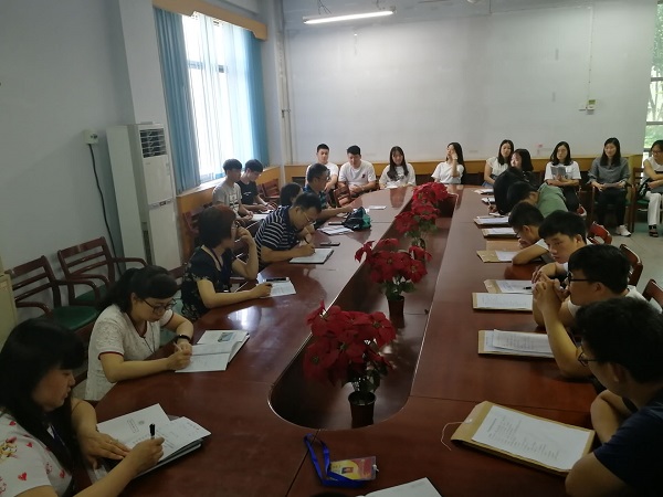 2018年6月11日上午,beat365中文版官网入口党总支学生支部组织全体2018届毕业生党员召开了党员教育交流会。学生支部书记朱冰同志和组织委员卢智敏同志参加了会议。