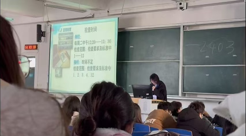 活动开始,纪检部以宿舍环境为切入点,从检查卫生的具体项目要求、宿舍卫生评分标准、查寝的制度、问题反馈机制、违规处理方法与奖惩措施、宿舍长的职责等方面进行全方位的讲解,结合图片、事例体现了宿舍环境氛围对同学们的影响以及宿舍长在日常管理上要起到督促和监督的责任,以便营造良好的宿舍氛围。
