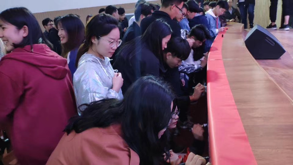 观影后,同学们纷纷在横幅上签名,表达自己的爱国热情和决心。