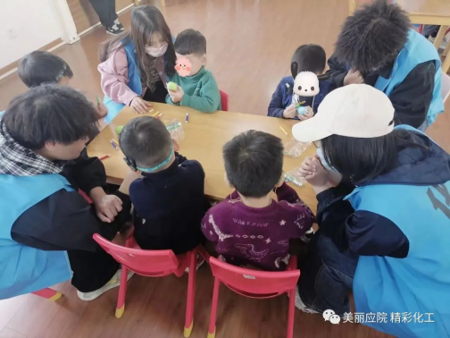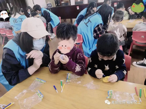 通过康复中心负责人的活动前培训,在此次的手工自绘彩蛋活动中,志愿者们用自己的专业知识及志愿服务技能把小朋友们带入活动中,以此锻炼孩子们的动手能力。