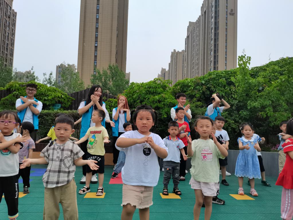 活动现场,志愿者为孩子们带来了啦啦操、魔术等表演,孩子们也表演了手语舞,期间还进行了互动游戏,志愿者与小朋友们一起合作,共唱一首歌曲《谢谢你》......大家一起唱歌跳舞,一起做游戏,现场氛围其乐融融。