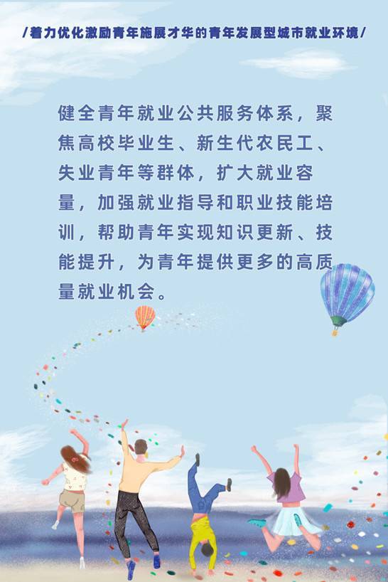 近日,中宣部、人社部等17部门联合印发《关于开展青年发展型城市建设试点的意见》,积极解决高校毕业生、新生代农民工、失业青年等群体的就业问题。